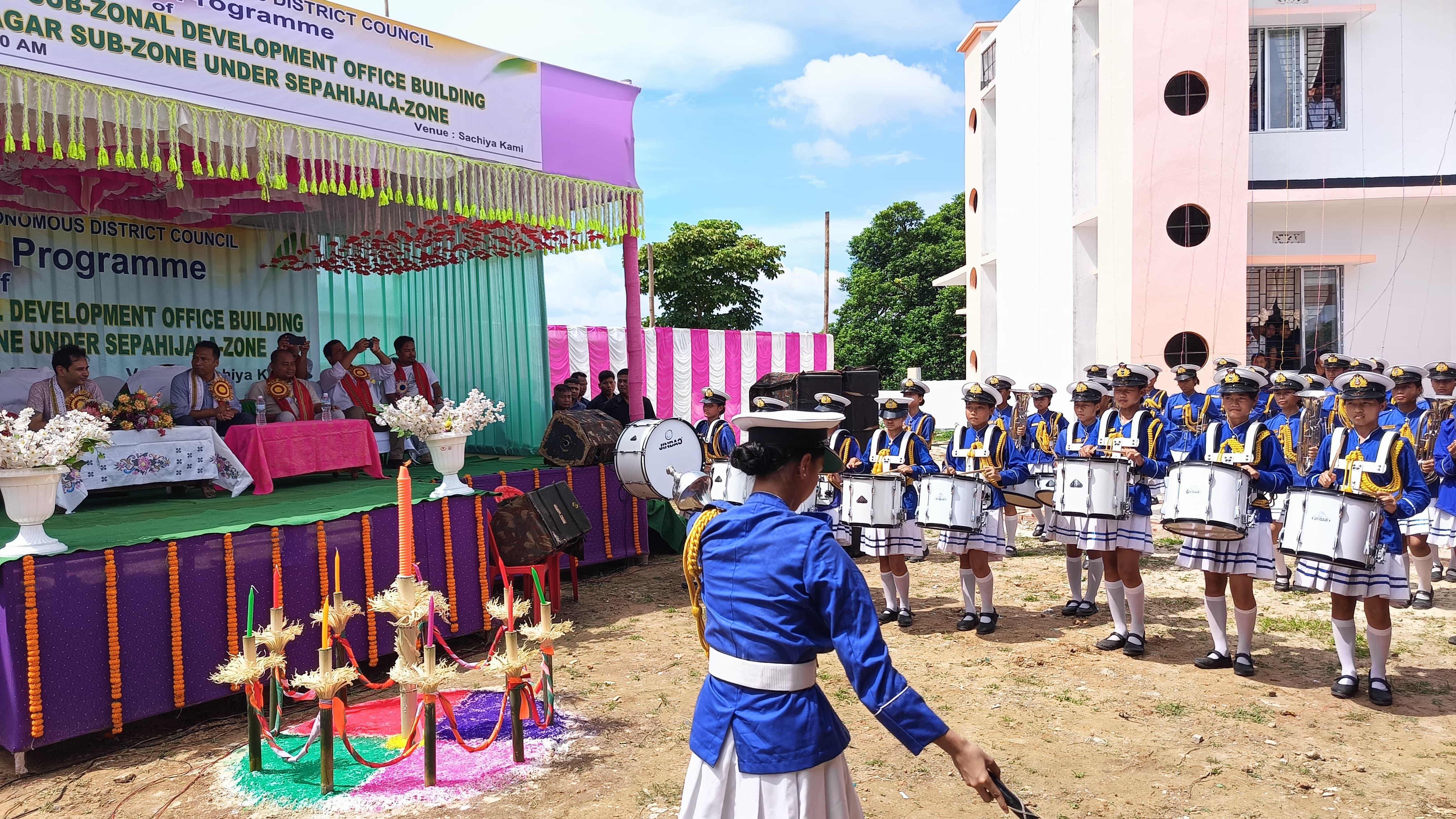 St. Xavier's Higher Secondary School Pathaliaghat Band put up an excellent show during a programme held on 12th September 2024 at Pramode Nagar under Sepahijala District in which Bubagra Mr. Pradyut Kishoreanikya Debbarma was the Chief Guest. The school band team mesmerized the crowd with their enchanting and enthralling performance. The Bubagra himself was taken up by the talents of the students inmplaying the Band Instruments. While addressing the gathering he thanked and appreciated the school band team for its extraordinary performance. He invited the school band to give another show in his residence with other dignitaries of TTAADC. He encouraged the school band to soar high and be a role model for other young children who are the future of the society. The school band team was excited and thrilled to see Bubagra and to interact with him.