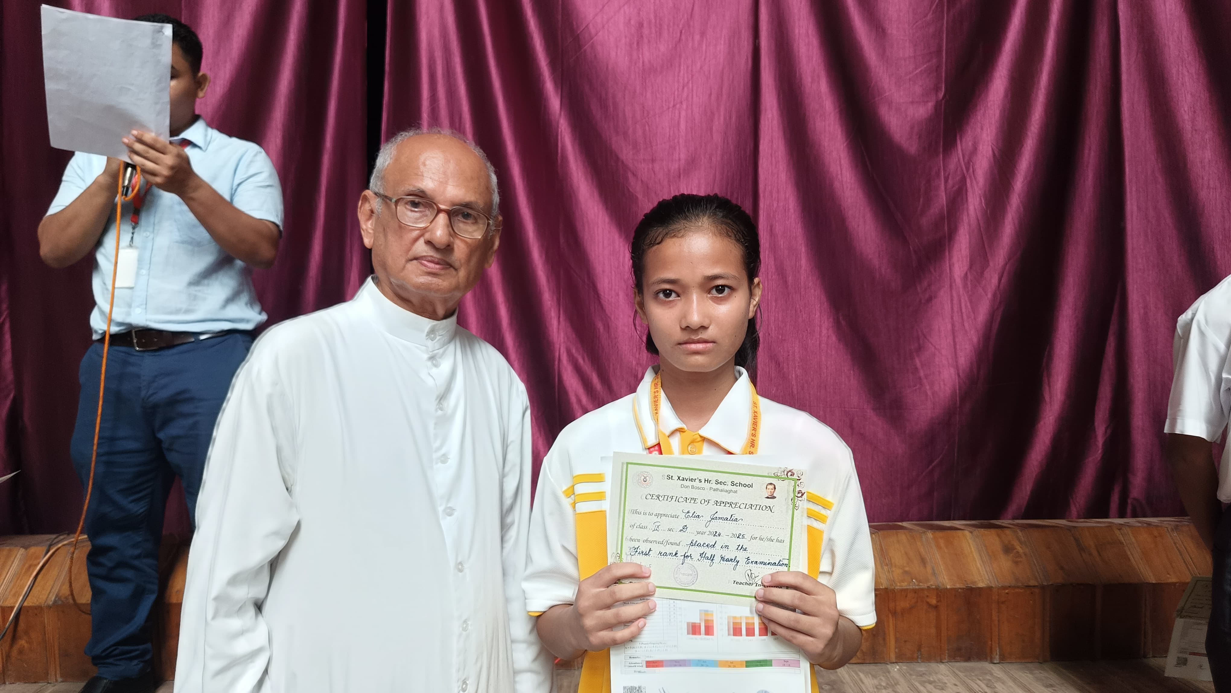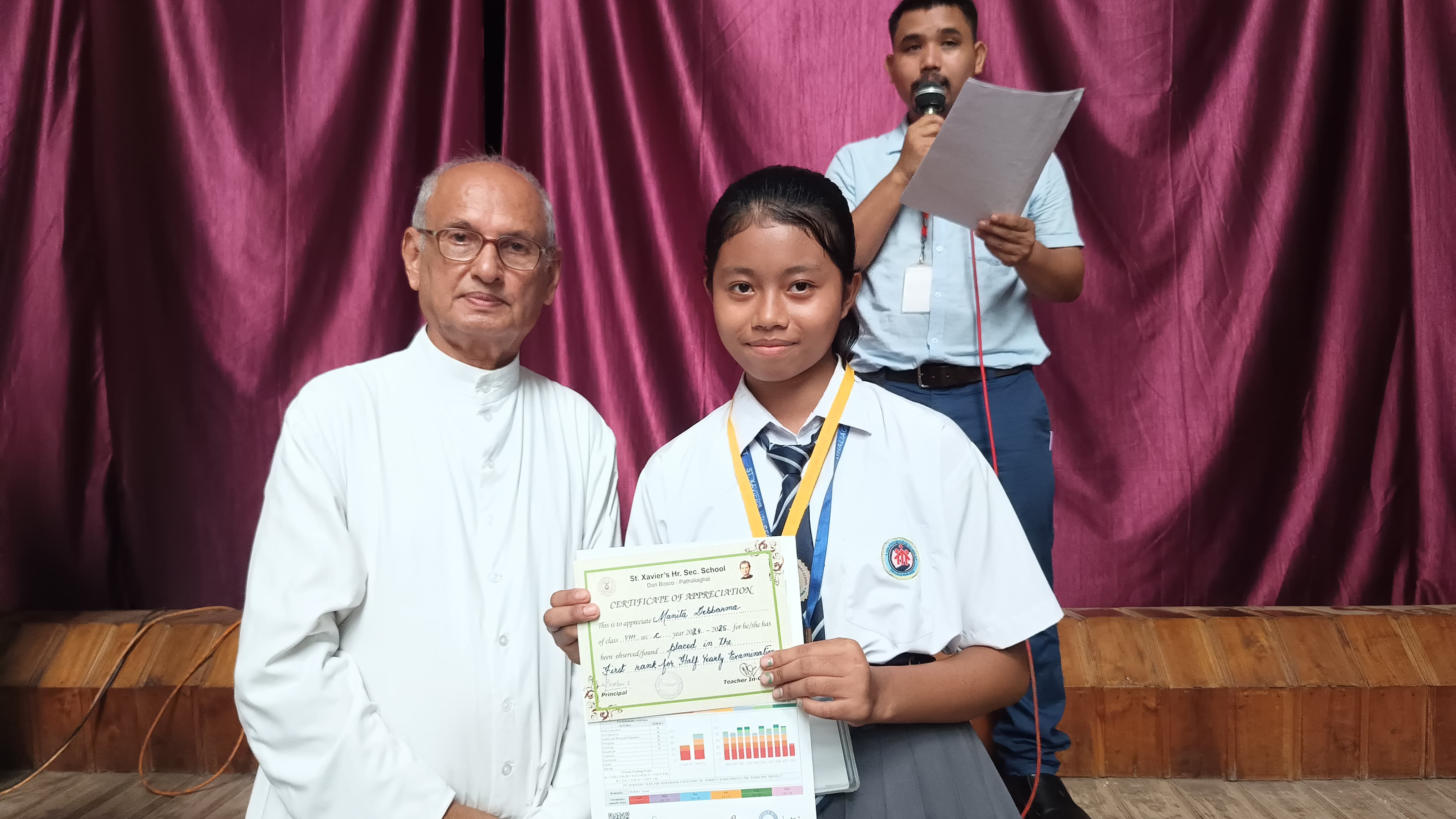 St. Xavier's Higher Secondary School Pathaliaghat declared the Result of Term1 examination on 23rd October 2024 at 9:30 am. Classes I - 12 students received their results of Term 1: examination held from 19th September to 9th October 2024. Fr. K.A. Thomas, the Vice -principal declared the results during a short function held in the hall and congratulated all those students who did so well in their examination. Fr. K.K. Joseph, the Rector, gave away certificates and medals for all first three rank holders of all classes. The awarding ceremony was witnessed by fathers, sisters, teachers, students and our beloved parents. It was a great and a memorable day for all students. The school also felicitated all those students who secured 100% attendance during Term1 with certificates. The school thanked the teachers for their dedication and hard work and appreciated the support extended by all parents.